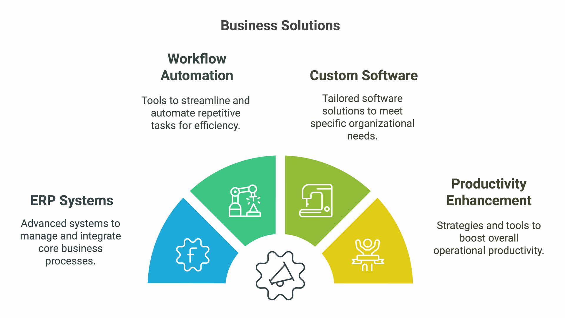 Transform your business processes with powerful tools designed to improve productivity, collaboration, and efficiency. Our solutions cover everything from Enterprise Resource Planning (ERP) to custom software development. Whether you're managing inventory, streamlining workflows, or automating tasks, we provide scalable tools tailored to your organization's needs.