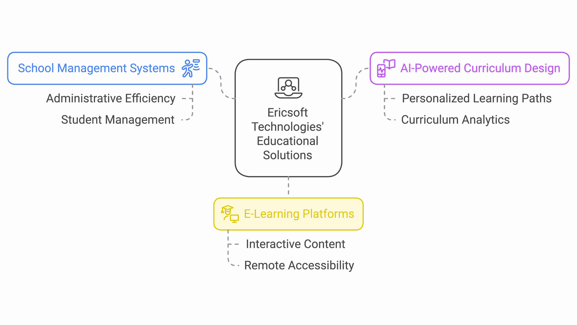 At Ericsoft Technologies, we are revolutionizing the education sector with tailored Educational Solutions that streamline operations, enhance learning experiences, and empower educators. From school management systems and AI-powered curriculum design to dynamic e-learning platforms, our solutions are built to create impactful and accessible learning environments.